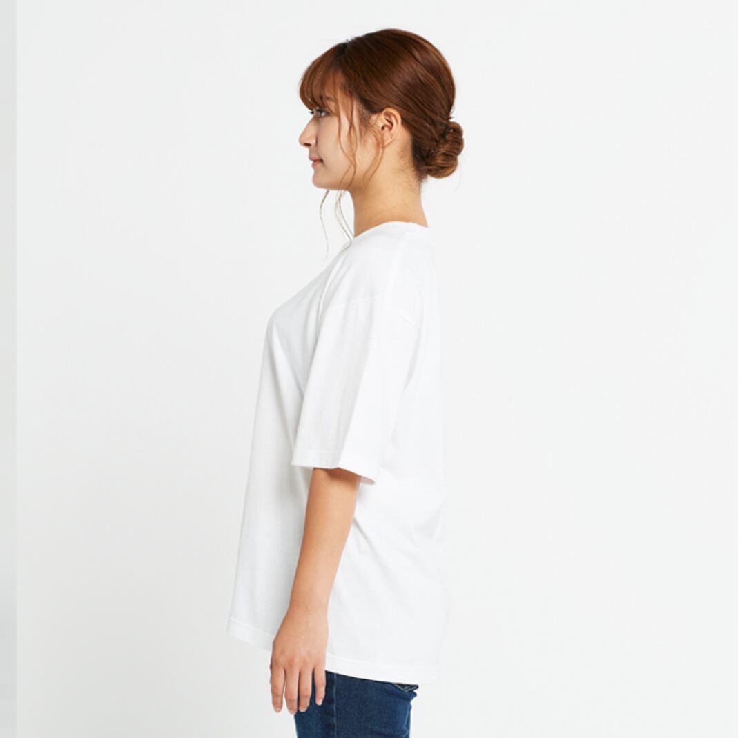肩幅と身幅が大きめのリラックス感のある5.6オンス ヘビーウェイトビッグTシャツ。オーバーサイズでゆったりしているトレンドのサイズ感です。